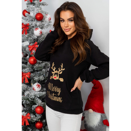 BLUZA ŚWIĄTECZNA MERRY CHRISTMAS CZARNA. Bluza damska świąteczna z reniferem.