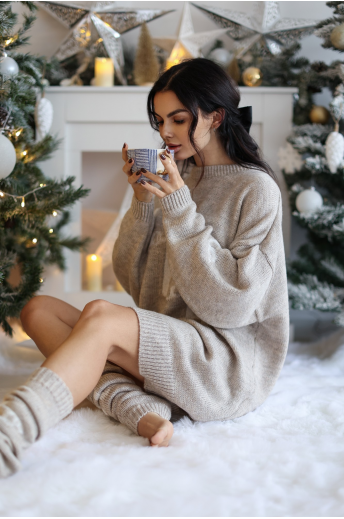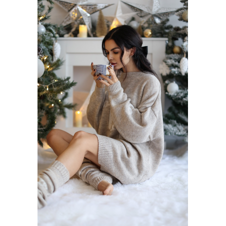 KOMPLET ŚWIĄTECZNY DZIANINOWY HOHO SUKIENKA OCIEPLACZE | BEŻOWY