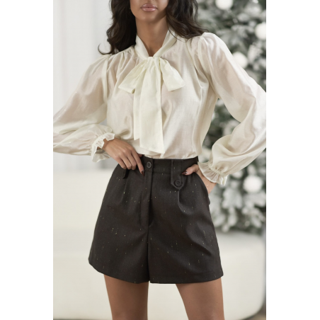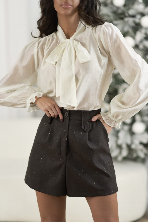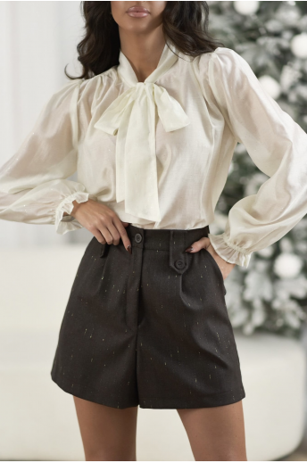 SZORTY DAMSKIE ZE ZŁOTĄ NITKĄ | BRĄZOWE