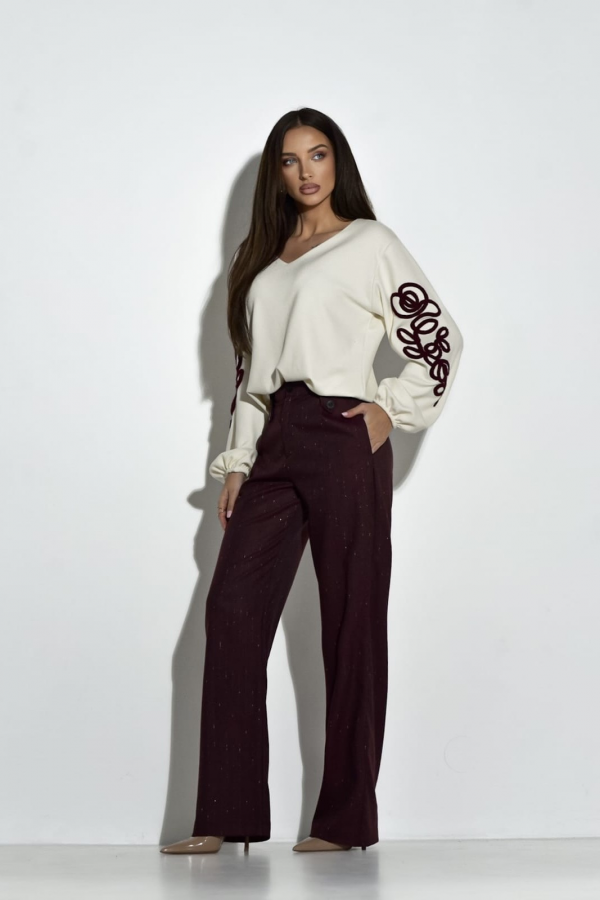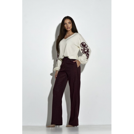 SPODNIE W JODEŁKĘ ZE ZŁOTĄ NITKĄ, ŚLIWKOWE