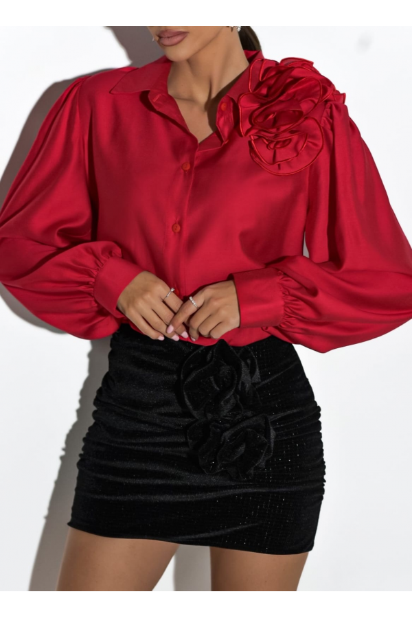 Czarna, połyskująca spódniczka mini wykonana z welurowego materiału. Model ten posiada dwie ozdobne róże, które nadają całości wyjątkowego charakteru. Spódniczka posiada gumkę w pasie oraz zamek na boku. Modna i stylowa propozycja Twojej stylizacji na ten sezon.