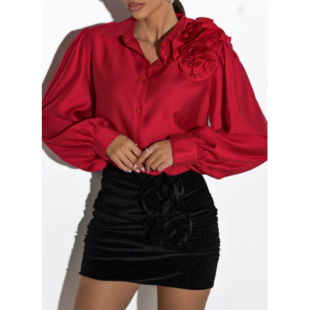 SPÓDNICA MINI WELUROWA Z RÓŻĄ | CZARNA