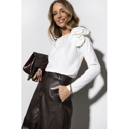 BLUZKA ELASTYCZNA Z ODPINANYM KWIATEM | BIAŁA