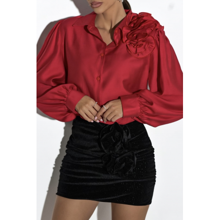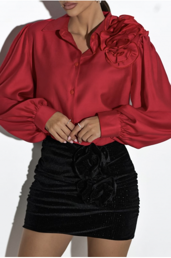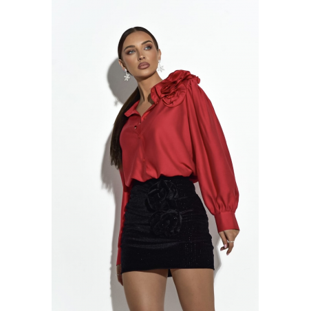 KOSZULA Z OZDOBNYM DOPINANYM KWIATEM, CZERWONA