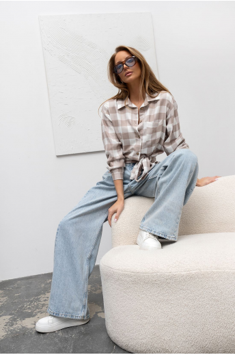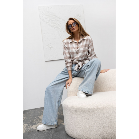 KOSZULA DAMSKA W KRATĘ Z WIĄZANIEM | BEŻOWA