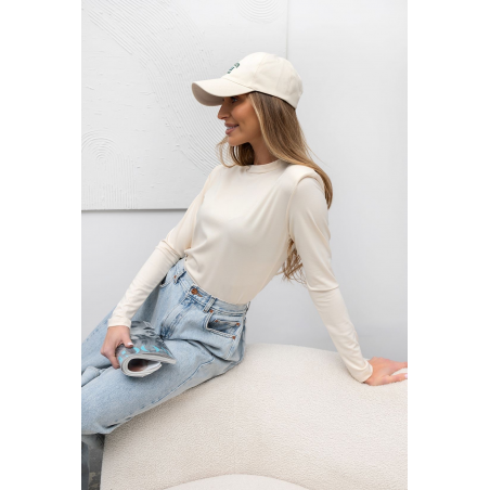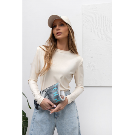 Bluzka damska w kolorze ecru z długimi rękawami. Model posiada klasyczny fason oraz stylowe poduszki na ramionach. Bluzka wykonana jest z bardzo przyjemnego, elastycznego materiału. Idealna propozycja na nadchodzący sezon.