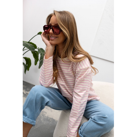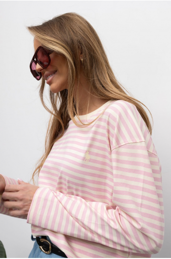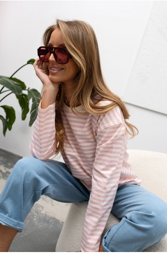 KLASYCZNY LONGSLEEVE W PASKI | RÓŻOWY