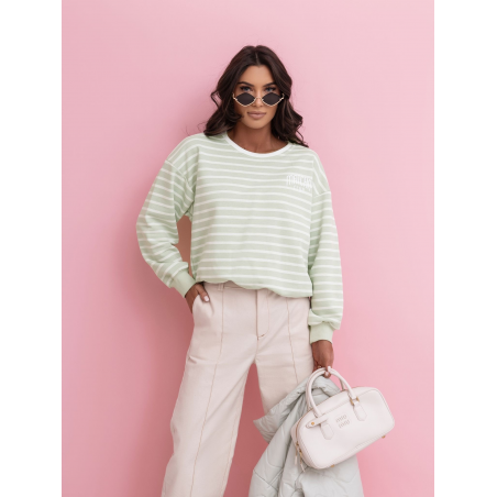 BLUZA DAMSKA BEZ KAPTURA W PASKI, MATCHA