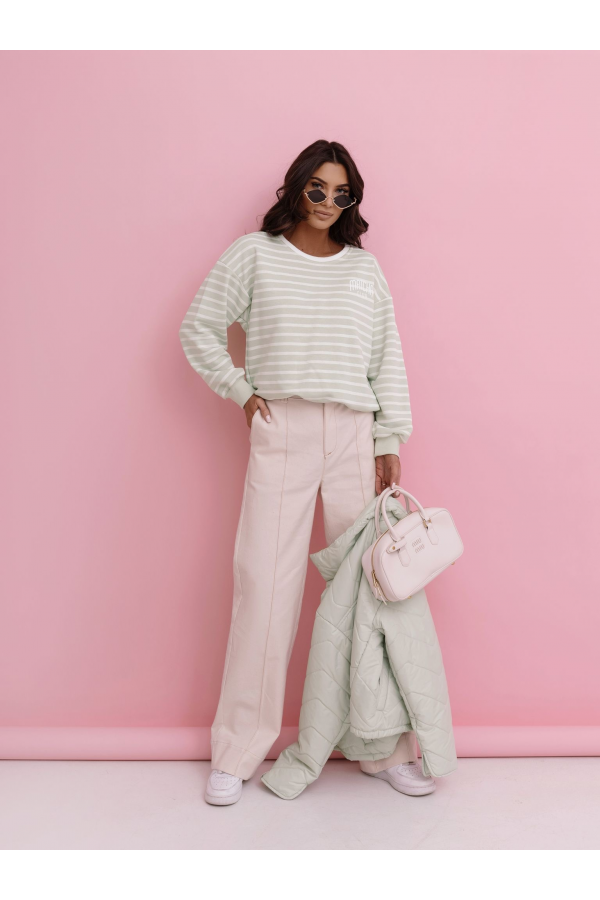 BLUZA DAMSKA BEZ KAPTURA W PASKI | MATCHA