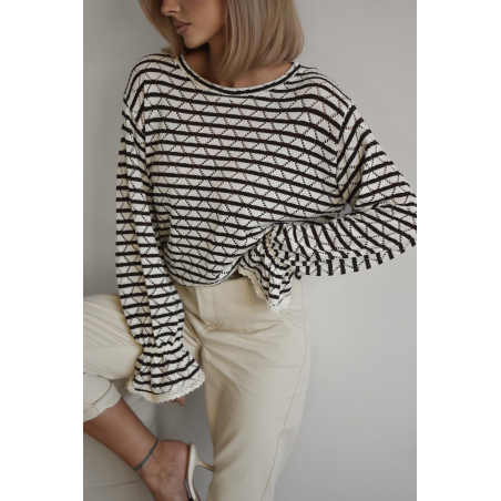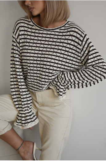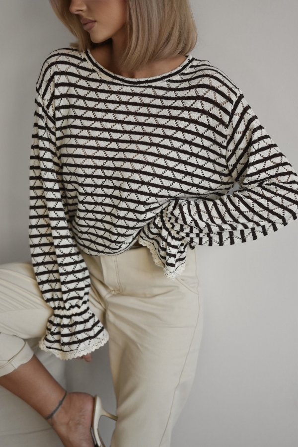 SWETEREK AŻUROWY W PASKI | GORZKA CZEKOLADA