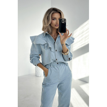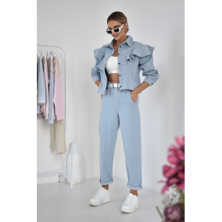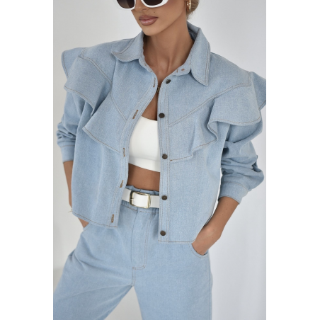 KURTKA DAMSKA JEANS Z FALBANĄ | NIEBIESKA