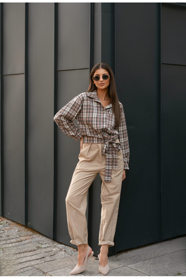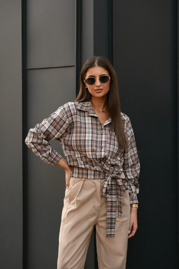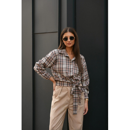 KOSZULA DAMSKA W KRATĘ Z WIĄZANIEM